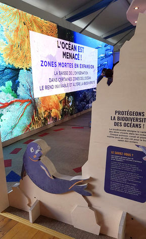 Ce stand ludique met en avant les engagements de la fondation pour la préservation des océans :
